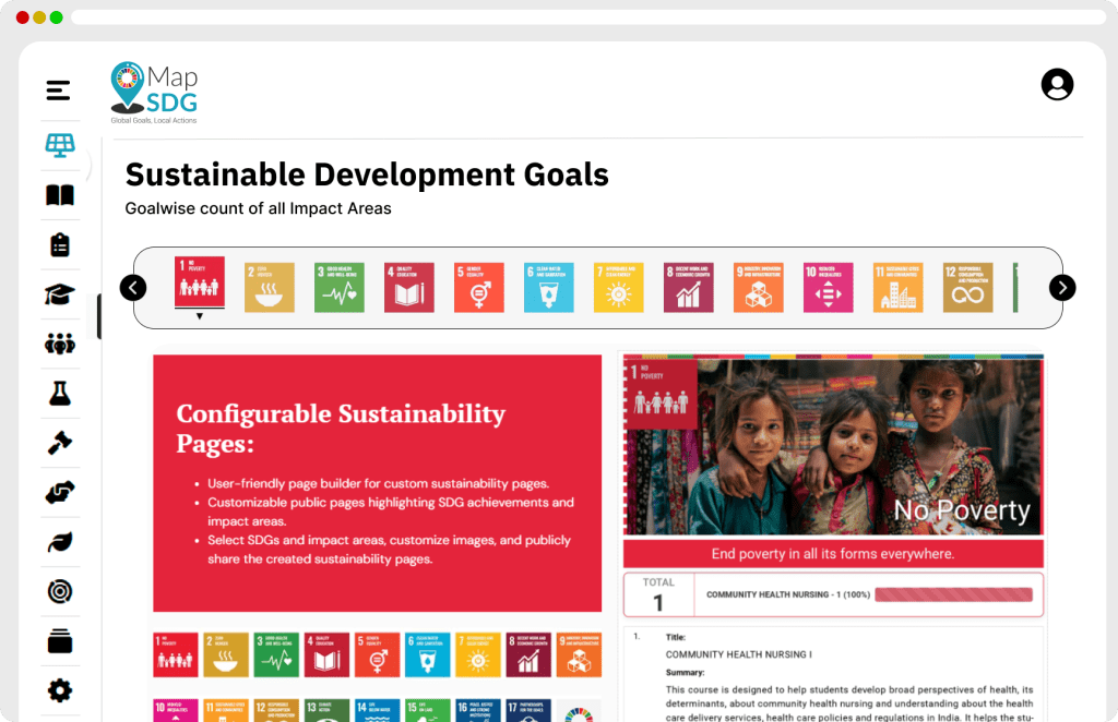 Easily map academic courses and student projects to relevant Sustainable Development Goals, helping institutions foster real-world impact through teaching and learning.
